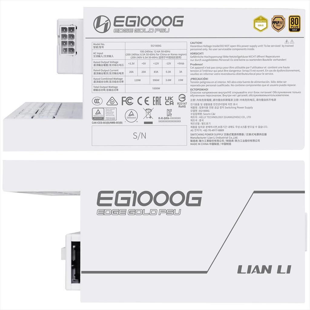 PSU 1000W LIAN LI EDGE EG1000G 80+ GOLD PCIe 5.1 (L-Shape, w/x4 USB 2.0 headers), FULL MODULAR White