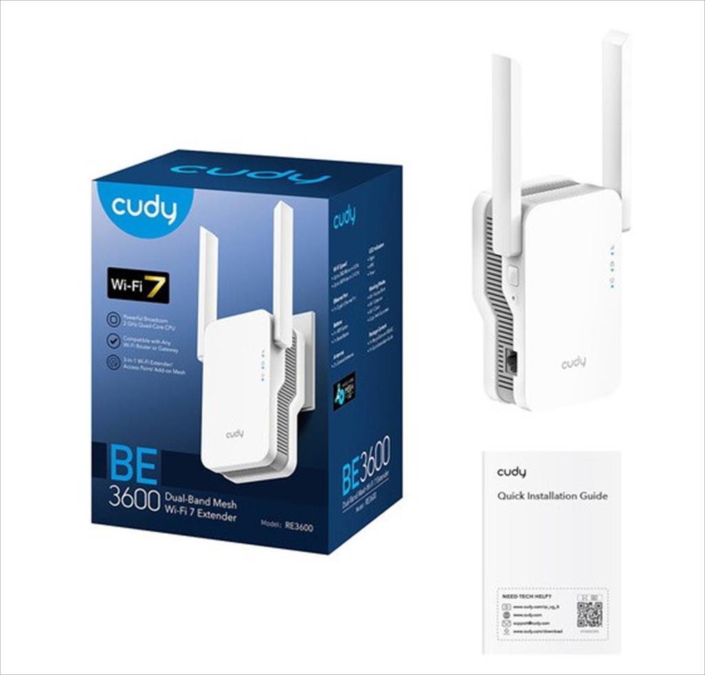 NET RANGE EXTENDER RE3600 CUDY, BE3600, Wi-Fi7, 1xGIGABIT, x2 antennas